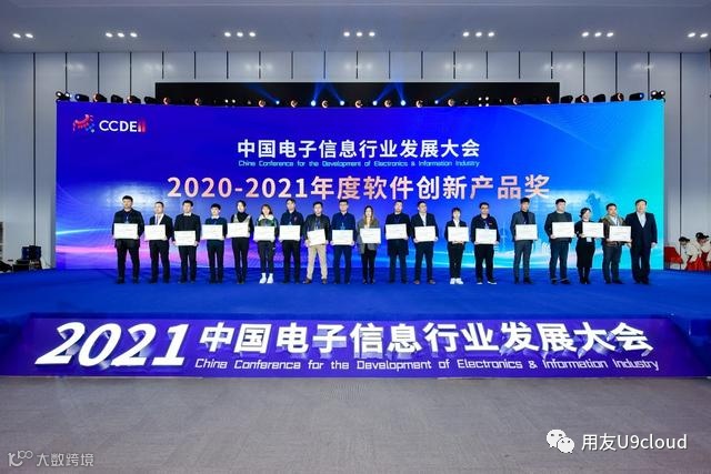 本次大会还举办了2020-2021年度优秀创新软件产品发布会,对优秀的软件产品给予奖项表彰。用友U9 cloud凭借2021年度完美的表现脱颖而出,揽获“2020-2021年优秀创新软件产品”大奖。
