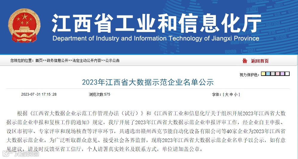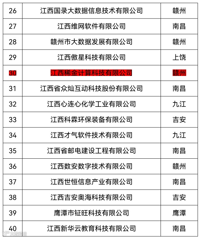 近日,江西省工业和信息化厅公布了2023年江西省大数据示范企业名单,经过层层审批,全省共40家企业入选。在本次评选中,赣州市共有9家企业入围江西省大数据示范企业名单。其中江西稀金计算科技有限公司入围2023年江西省大数据示范企业名单。