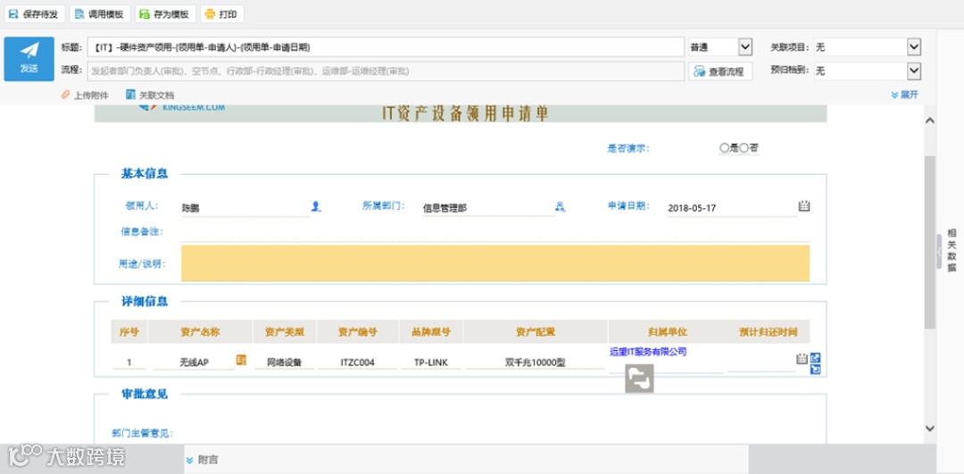 于是,致远互联资产管理解决方案应运而生,统一资产管理平台,全面覆盖资产审批流、信息流和数据流层面,实现业财一体化。