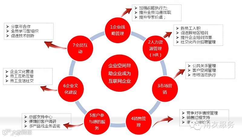 企业空间帮企业实现了以员工、客户、供应商为中心的内外服务一体化、加强客户沟通,打造互联网时代的企业管理新模式。