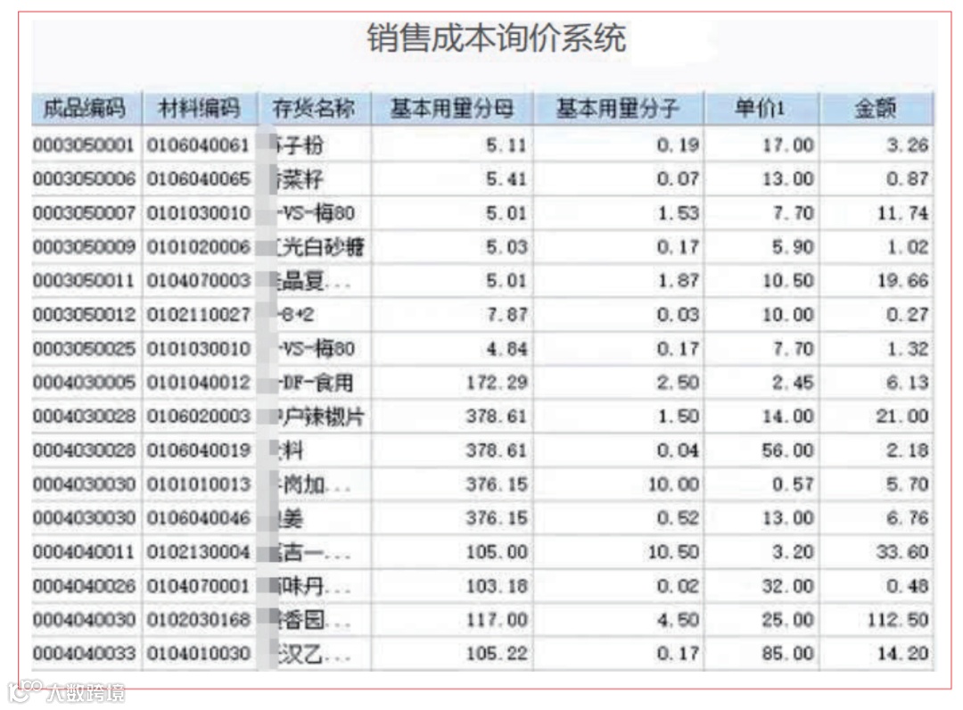 在收到客户订单后,需要提供报价,每张订单上的商品所对应的上百种材料,需要手工查找价格和核算,费时费力,出错率高。