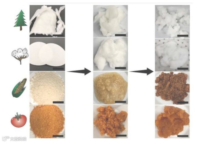在实验过程中,该团队将番茄皮和玉米芯磨碎,并将木浆和棉纸切成小薄片,浸泡在水中。然后,以一种可控方式使这些材料发生化学反应,将其分解成三种不同的功能材料组分,包括微产物、纳米颗粒和水溶性生物聚合物。在钕溶液中加入微产物或纳米颗粒,能够触发分离过程,从而收集钕样品。