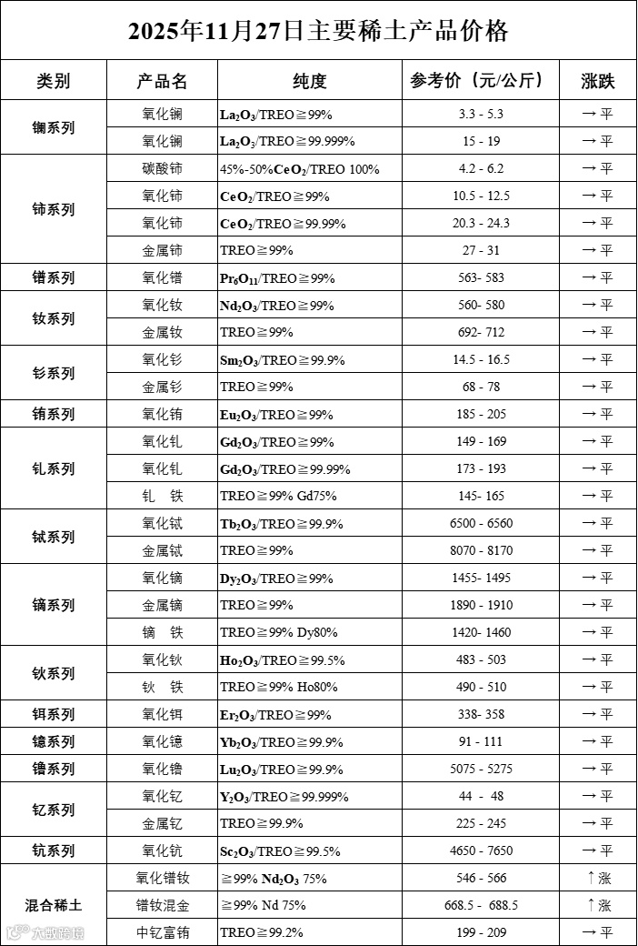 主要稀土价格