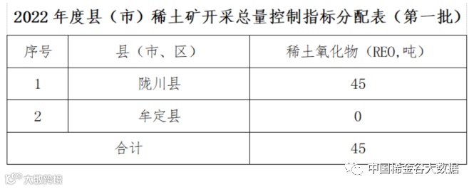 云南省自然资源厅关于2022年度第一批钨矿稀土矿开采总量控制指标分解下达的公示