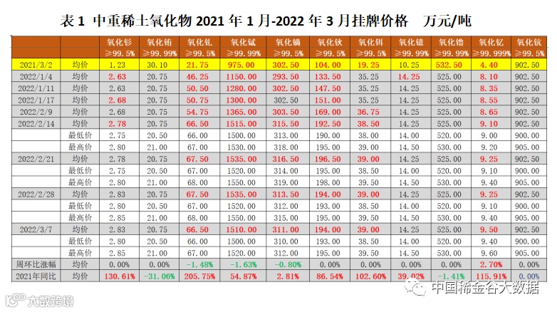 20220228-20220304稀土市场资讯周报(2022年第7期 总第206期)