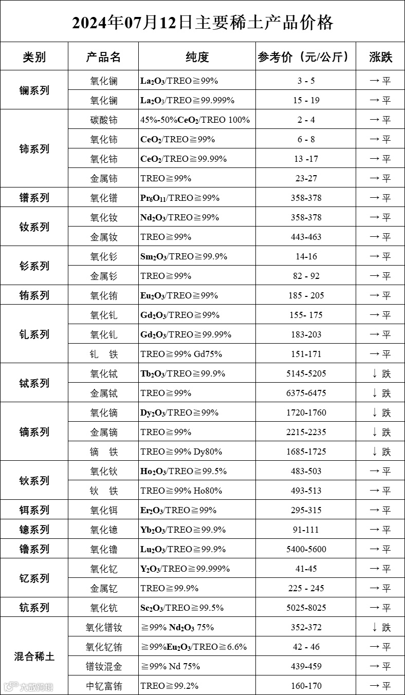 主要稀土价格