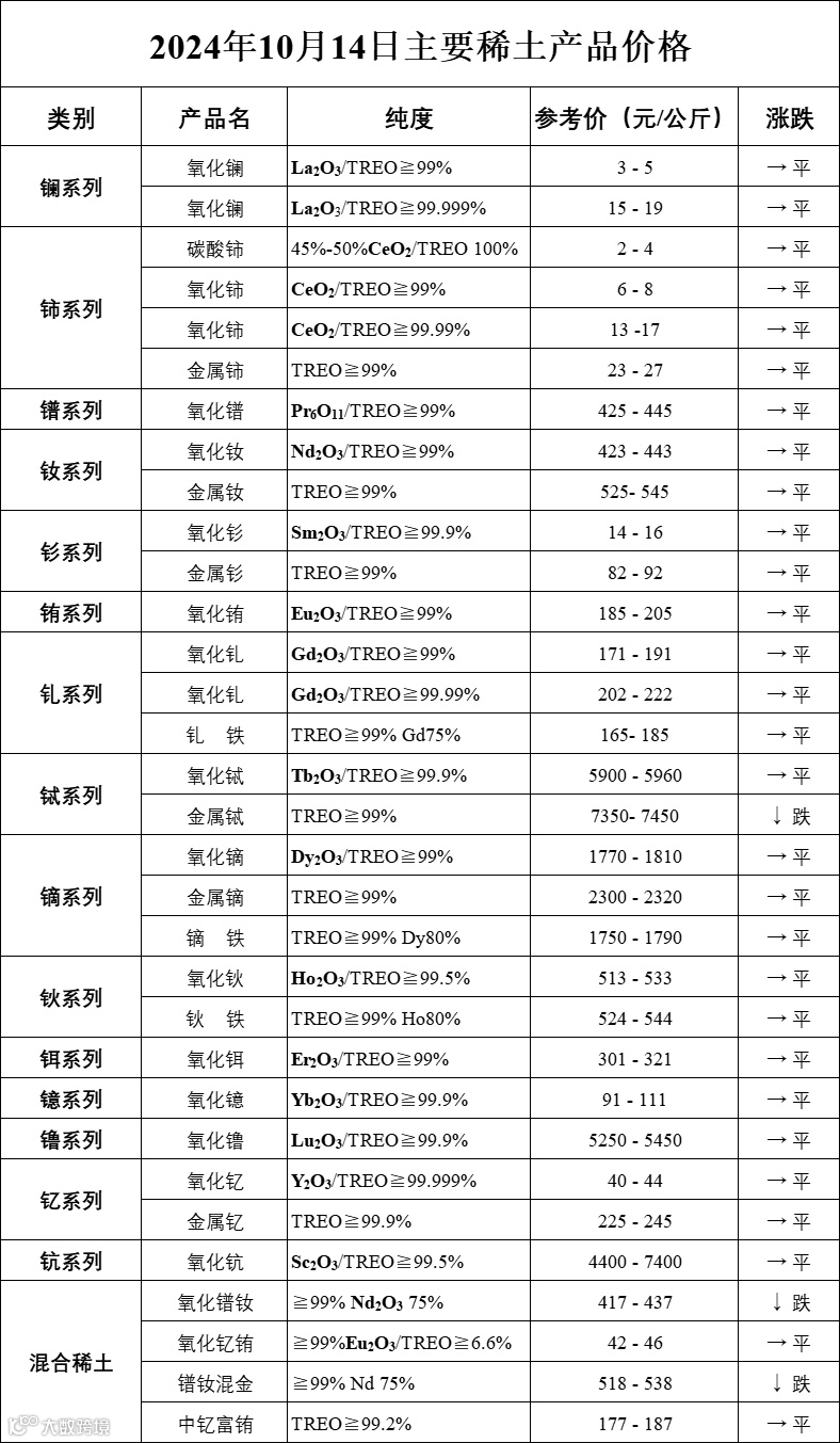 主要稀土价格
