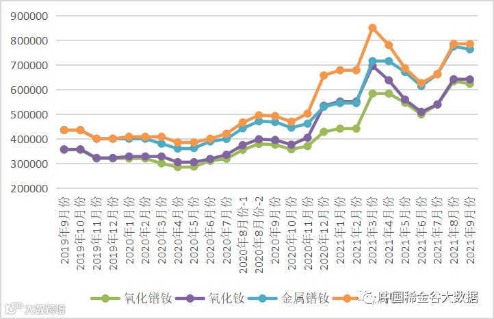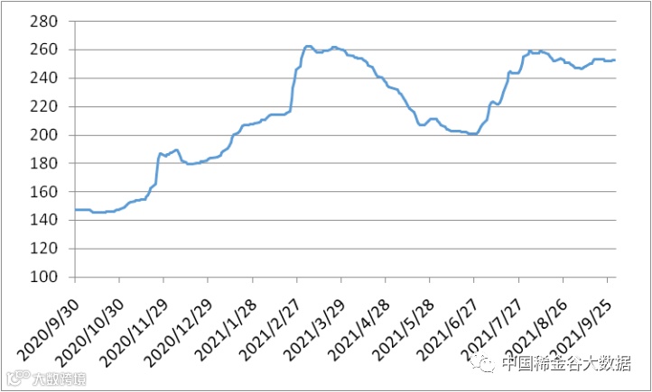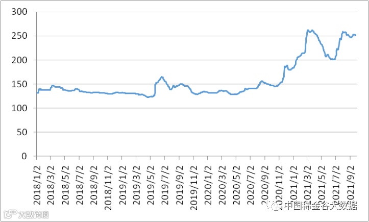 图1 镨钕系轻稀土挂牌价格走势图(201908-202108)