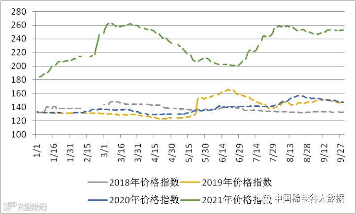 图4 2018-2021年稀土价格指数同期走势图