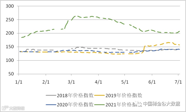 图4 2018-2021年稀土价格指数同期走势图