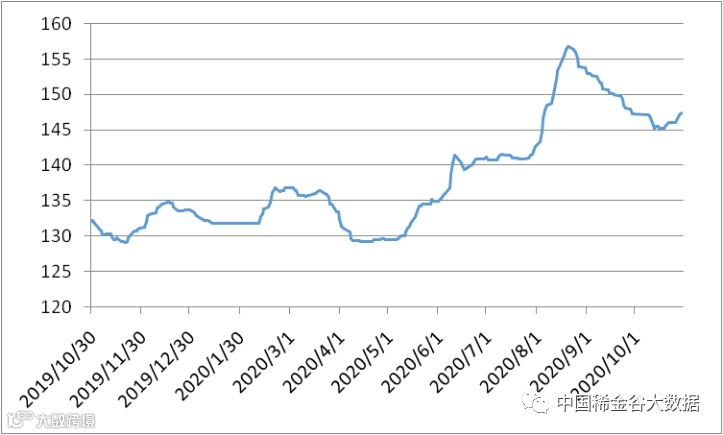 图1 镨钕系轻稀土挂牌价格走势图(201910-202010)