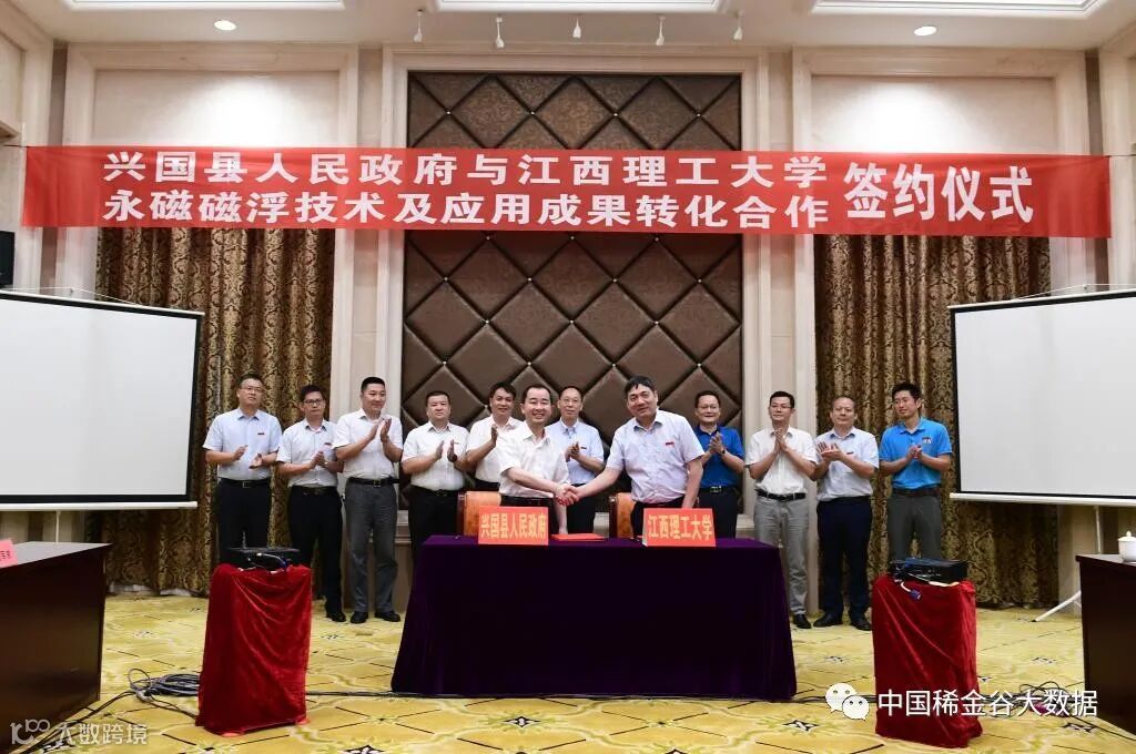 5月11日上午,我校与兴国县人民政府关于永磁磁浮技术及应用成果转化合作协议签订仪式在兴国举行。兴国县委书记赖晓军、县长陈黎,我校校长杨斌、副校长罗仙平出席会议。兴国县委常委杨志正、副县长曾军威,县委组织部、县发改委、县财政局、县交运局、县工信局、县教科体局、县自然资源局、县城投公司等部门主要负责人,学校党办校办、科技处、计财处、外联处、电气学院、科技产业公司、永磁磁浮技术与轨道交通研究院等相关负责人参加会议,会议由陈黎主持。
