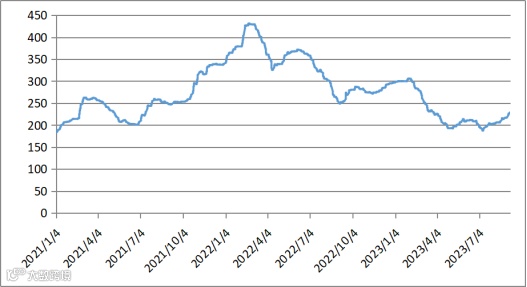 图1 镨钕系轻稀土挂牌价格走势图(2022年9月-2023年9月)