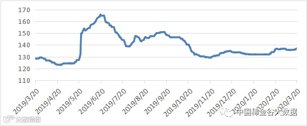 图1 镨钕系轻稀土挂牌价格走势(201803-202003)