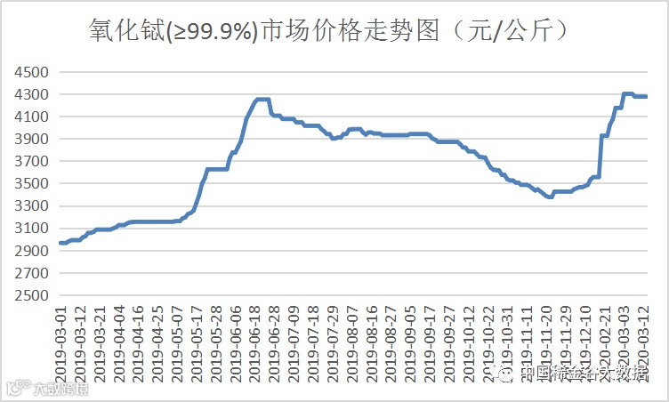 表一 中重稀土氧化物2019年12月-2020年3月挂牌价格 万元/吨