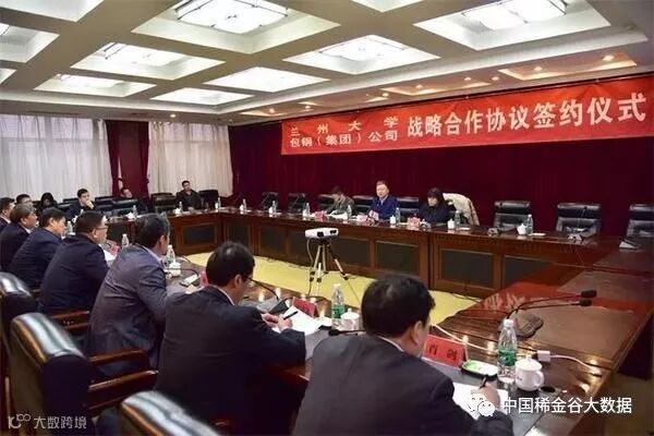 兰州大学校长、中科院院士严纯华,兰州大学化工学院副院长唐瑜,政策研究室副主任张北辰,包钢(集团)公司董事长、党委书记魏栓师,包钢(集团)公司副总经理、北方稀土董事长、党委书记赵殿清,包钢(集团)公司副总经理刘振刚,包钢(集团)公司董事、北方稀土总经理李金玲,包钢(集团)公司副总工程师、北方稀土总工程师、包头稀土研究院董事长杨占峰,包头稀土研究院院长崔凌霄,党委书记肖剑等领导出席签约仪式。包钢(集团)公司副总经理刘振刚主持签约仪式。