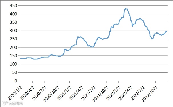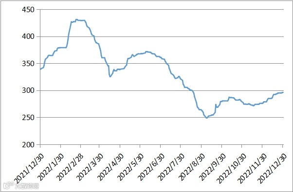本周有5个交易日,稀土价格指数分别为295.2、295.2、295.6、296.2、296.2,价格指数平稳。20211230-20221230区间稀土价格指数走势图、2019-2022年价格指数同比走势图、2020-2022年稀土价格指数走势图如下: