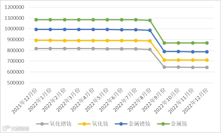 表1 轻稀土系列2021年12月-2022年12月份挂牌价格 元/吨