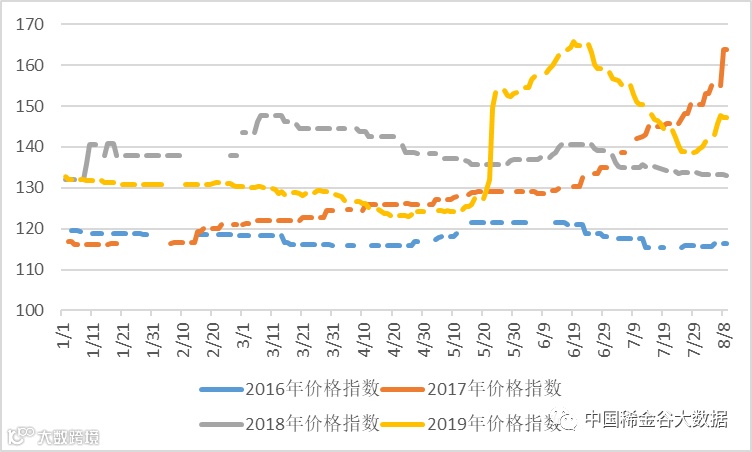 2016-2019年稀土价格指数同期走势图