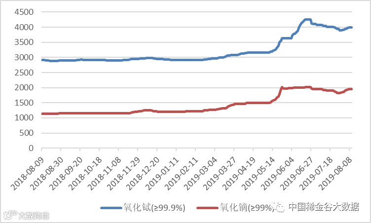 图1 镨钕系轻稀土挂牌价格走势(201709-201907)