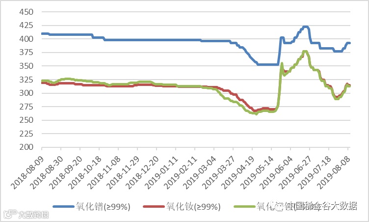 2018-2019年氧化铕(钆、钬、铒)价格走势图 元/公斤