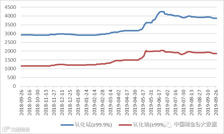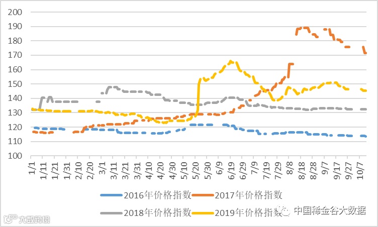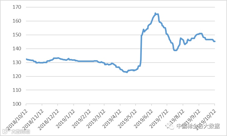 图1 镨钕系轻稀土挂牌价格走势(201710-201910)