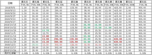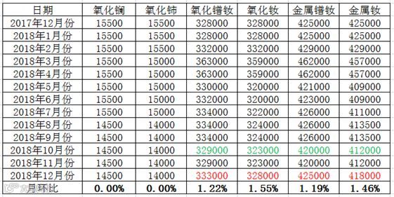 表二 轻稀土系列2017年12月-2018年12月份挂牌价格 元/吨