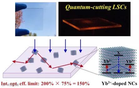近日,中科院大连化物所光电材料动力学特区研究组吴凯丰研究员团队基于稀土金属镱掺杂的纳米晶材料,首次提出“量子裁剪太阳能聚光板”概念,并基于该概念,制备了高效率太阳能聚光板原型器件。相关成果发表于《纳米快报》(Nano Letters)上。