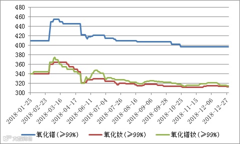2018年氧化铽(镝)价格走势图 元/公斤