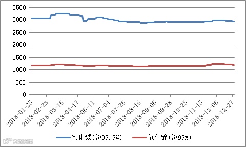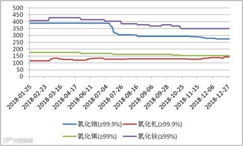 2018年氧化铕(钆、钬、铒)价格走势图 元/公斤