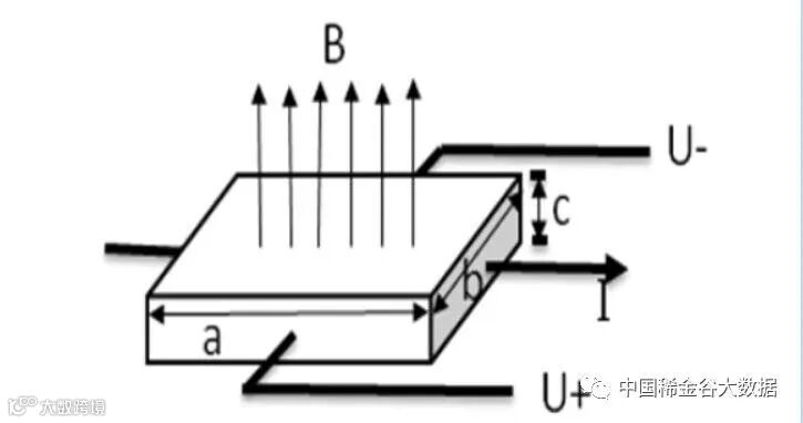 通有电流的铁磁体置于均匀磁场中,如果磁场的方向与电流的方向垂直,载流子在磁场中受洛仑兹力的作用,它就会发生在垂直于磁场和电流的两个方向的偏移,样品的两端之间产生电场EH, 这种现象称为霍尔效应。