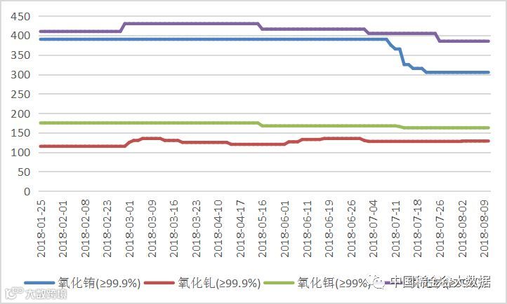 2018年氧化铕(钆、钬、铒)价格走势图 元/公斤