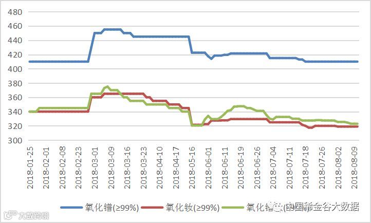 2018年氧化镨(钕、镨钕)价格走势图 元/公斤