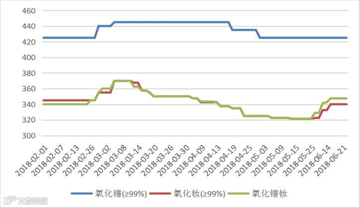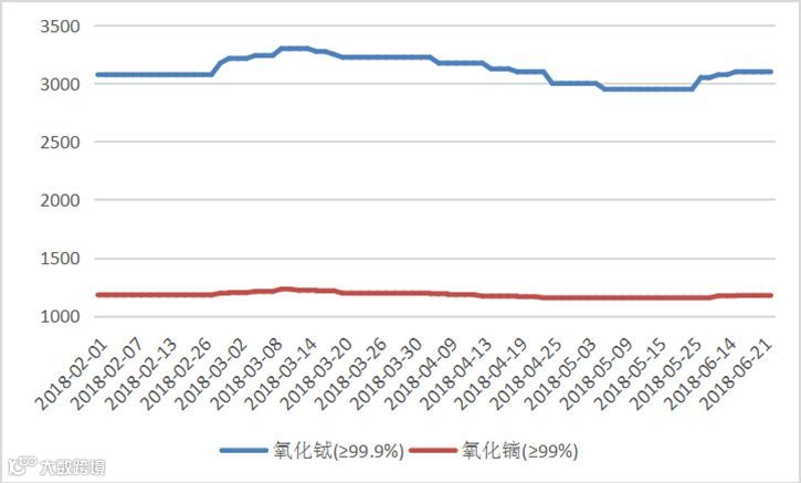 2018年氧化镨(钕、镨钕)价格走势图 元/公斤