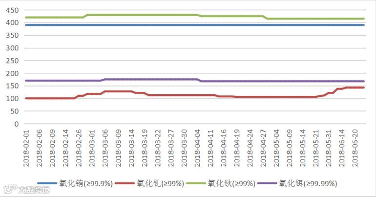 2018年氧化铕(钆、钬、铒)价格走势图 元/公斤
