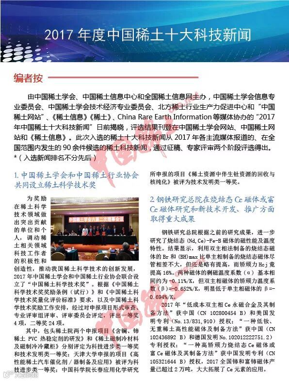 2017年度中国稀土十大科技新闻