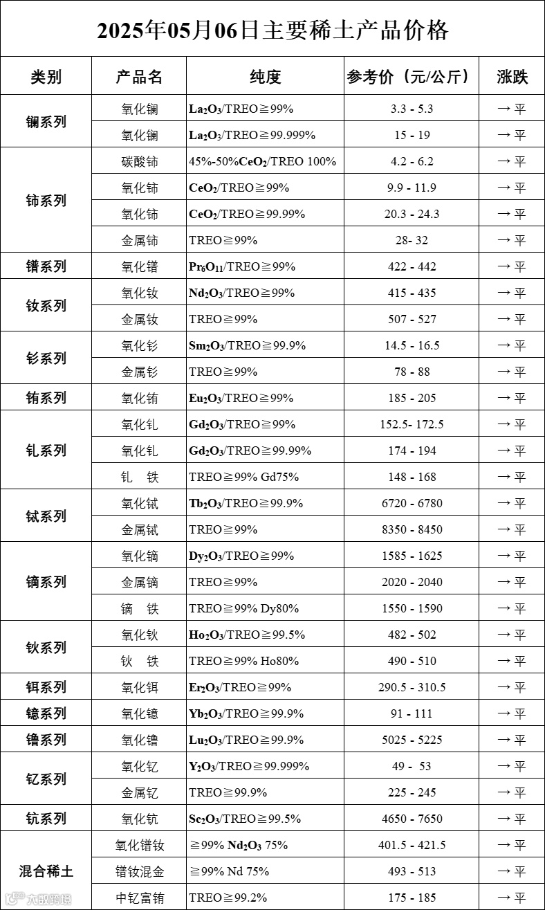 主要稀土价格