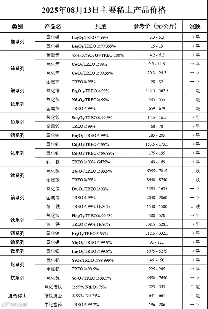 主要稀土价格