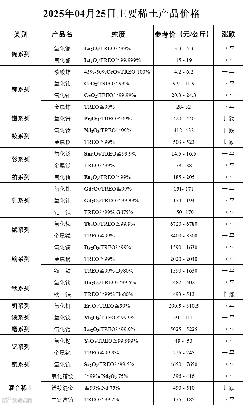 主要稀土价格