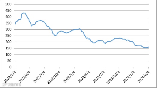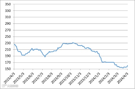 图1 镨钕系轻稀土挂牌价格走势图(2023年4月-2024年4月)