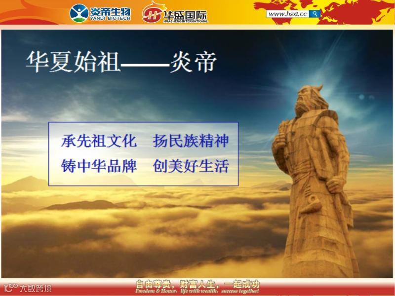 五千年后的炎帝公司正是继承了先祖文化、发扬了民族精神。知名报社的记者到炎帝考察的时候说:一家企业能把“炎帝”这两个字注册下来作为企业的名称,是非常难得的,可见这家企业的实力,也注定这家公司必须走长远、稳健规范的发展道路。如果您有幸成为炎帝事业的一份子,您将尊享多方资源,感受民族骄傲,满怀荣耀使命。同时在招商拓展的过程中,将引起更多合作者的共鸣,因为同一个民族同一个家,同一个祖先同一个事业,这将为市场成员带来更加强烈的参与感和凝聚力。
