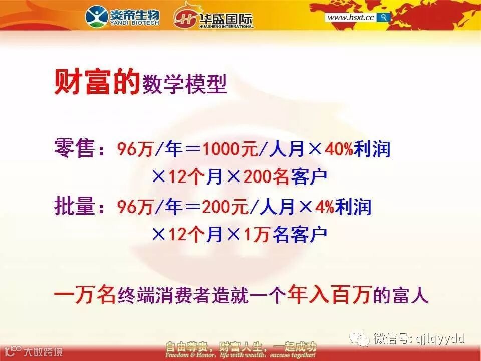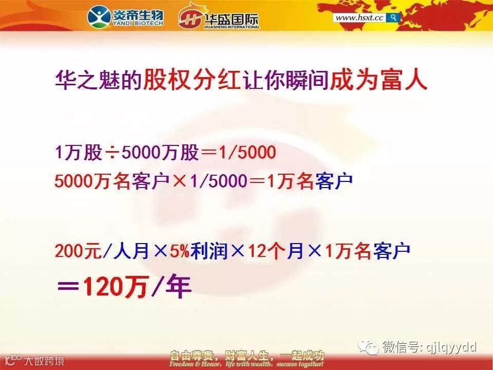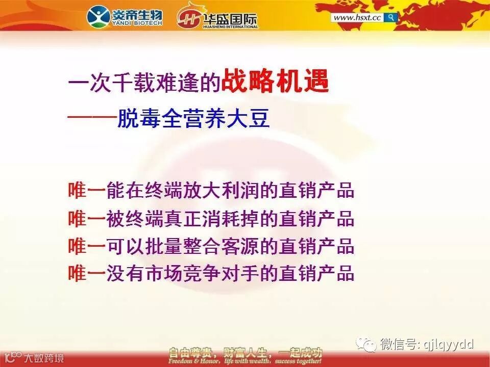 今天由湖南华之魅公司出品,湖南炎帝公司独家销售该产品,即使1/10的国人来喝它,每年也是2000亿的销售额!市场广阔,商机无限!!