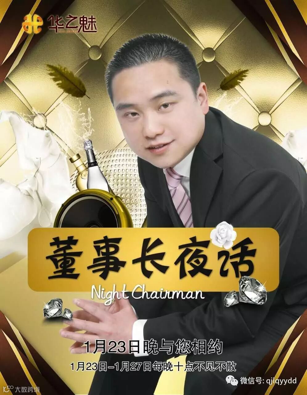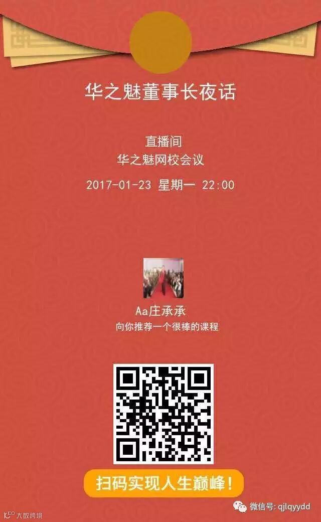1月23日晚上10点开始,连续5个晚上,由华之魅董事长陈彪,给我们来场心灵的洗礼和头脑的盛宴!让我们紧跟最前沿的思维,修炼自己!