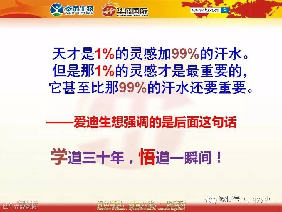 爱迪生曾经有过这样一句名言:天才是1%的灵感加99%的汗水,但是那1%的灵感才是最重要的,它甚至比那99%的汗水还要重要。后人断章取义省略了后面那句话,其实爱迪生想强调的正是是后面那句话。这跟我们的古人所总结的“学道三十年,悟道一瞬间。学无先后,达者为师。”是同一个意思。
