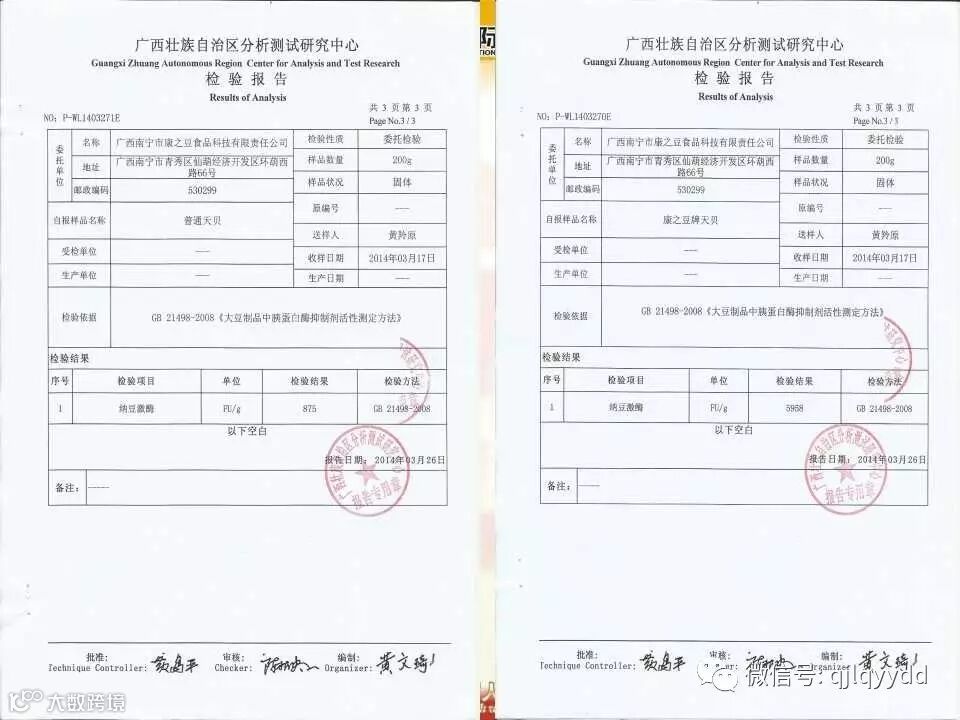 22、我们用脱毒全营养大豆制作的天贝跟普通豆子做的天贝进行比较,检测的结果显示,普通天贝每克纳豆激酶含量为800单位左右,而我们的纤佳乐天贝含纳豆激酶的含量竟高达6000单位,整整提升了7倍多,这说明了什么?说明了豆子经过脱毒处理之后其营养的吸收利用率比过去整整提升了7倍以上,它彻底改写了人类四千多年吃豆制品的历史,人类食用大豆从此将进入全营养大豆时代。