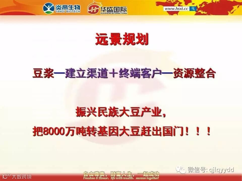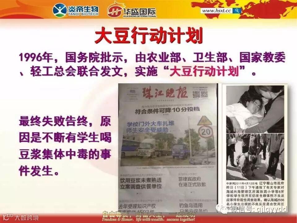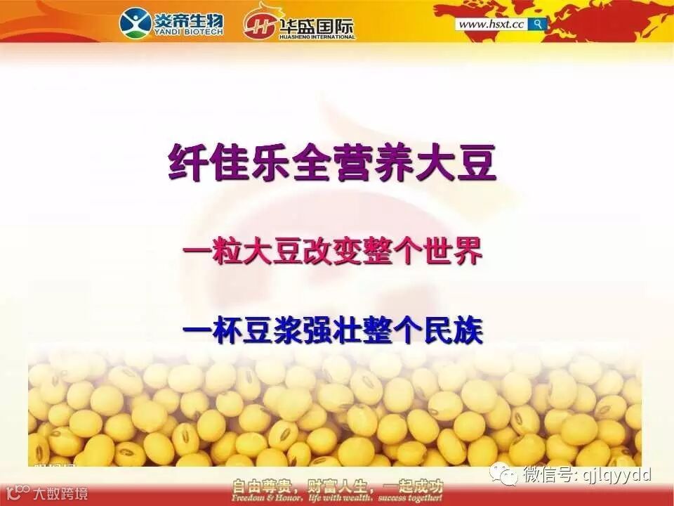 一粒大豆改变整个世界,一杯豆浆强壮整个民族,现在你们还觉得这只是一个口号吗?它是一个绝对可以实现的真实的目标!!!