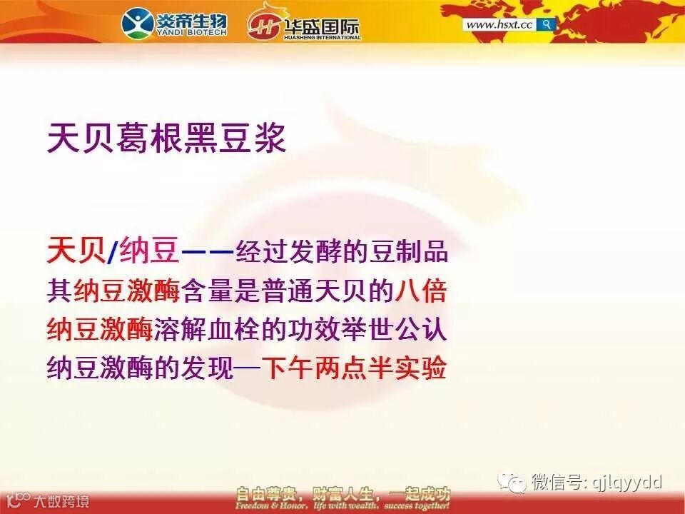我们的全球大豆第一人周华周总他不仅是个营销策划大师而且还是个营养健康的专家,有着20多年丰富的实践经验,在他的指导下调理好的四高人群已经数不胜数了,有时间的话你们可以去现场聆听他的健康原理讲座,也可以下载他的健康原理讲座的视频回去自己看。