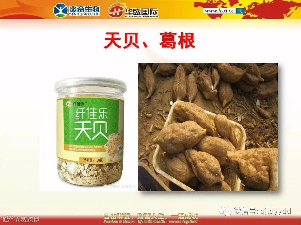 25、这就是我们的纤佳乐天贝,旁边那个就是葛根。葛根从地理挖出来就跟地瓜一样,洗干净去掉皮可以直接食用,也可以煲汤、泡茶,将其切成片低温烘焙之后就是纯天然的葛根片。