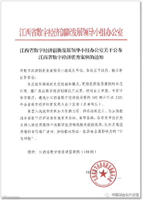 2021年6月申报的“稀金谷大数据平台助力产业智能制造”案例荣登江西省数字经济优秀案例百强,全省排名第21位,省内高校排名第2位。