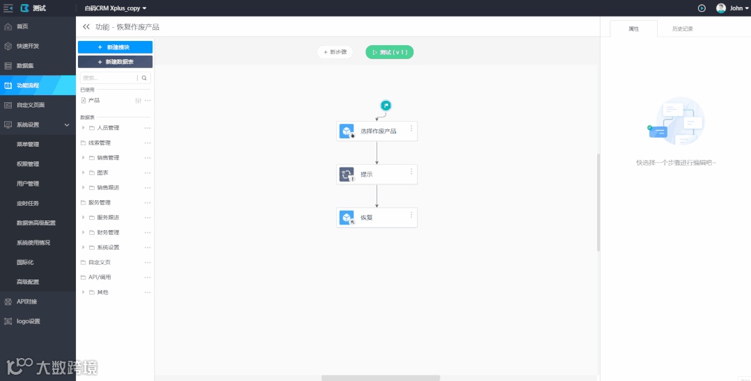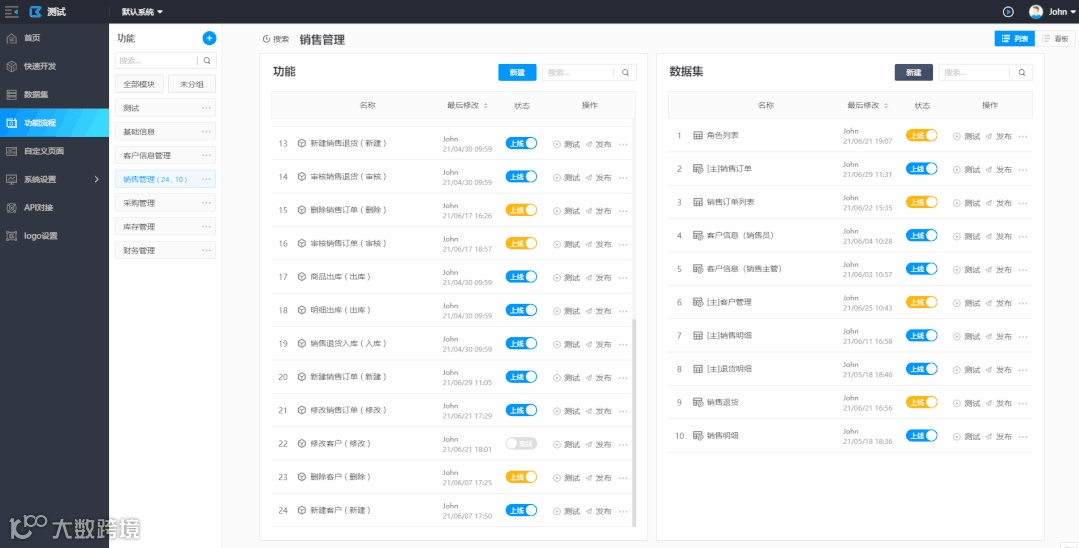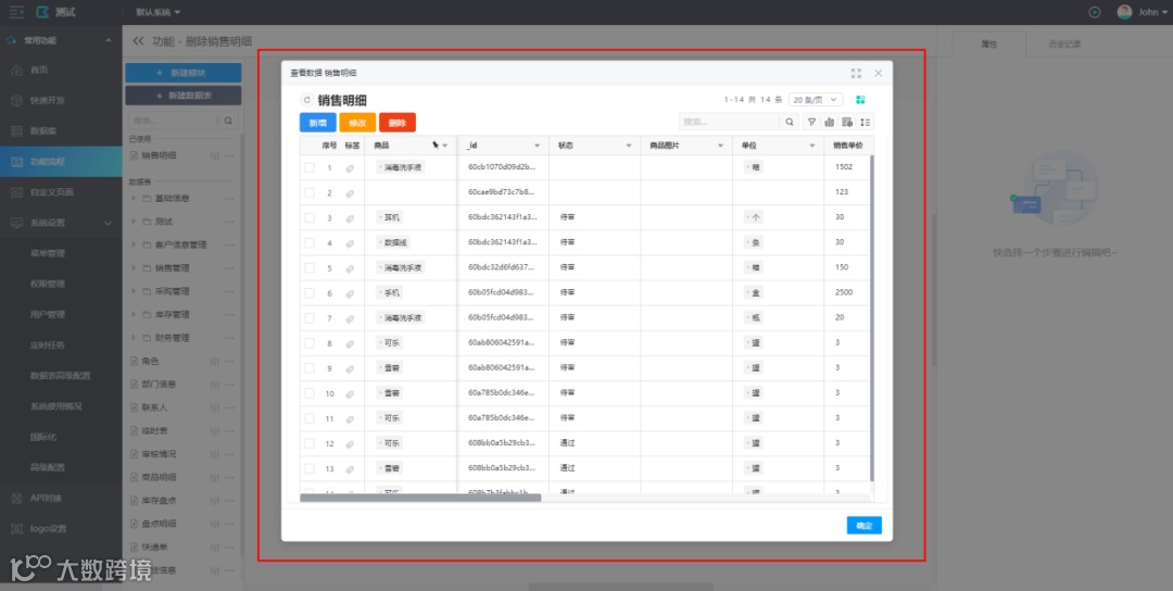 在数据集页面或者功能流程页面点击数据表查看数据时,不再跳转到对应的数据表的页面,而是以弹出窗口的方式显示此数据表。提高开发效率。